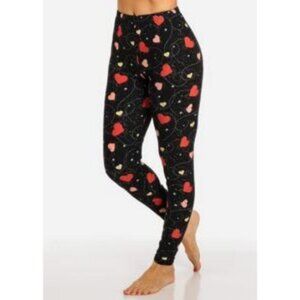BLACK Red Heart Print Yoga Band Full Length Leggings Size 12-20 NWT