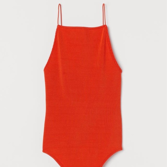 Ribbed Thong Bodysuit In Black New With Tags Back is a U cut, exposing back