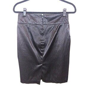 BLACK SATIN PENCIL MINI SKIRT W/PLEATED WAIST | SIZE S