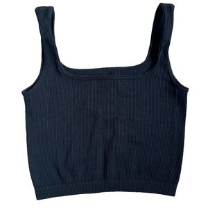 BLACK SEAMLESS RIBBED KNIT CROPPED SQUARE NECK TANK TOP SIZE SMALL
