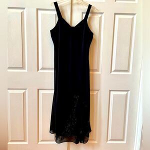 BLACK SLEEVELESS BEADED CREPE DRESS WITH DUSTER FULLY LINED SIZE 18W