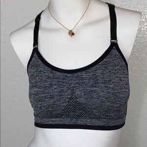 No brand but looks like Champion seamless type sports bra with adjustable straps. No pads, but there are holes to insert pads. Great condition!