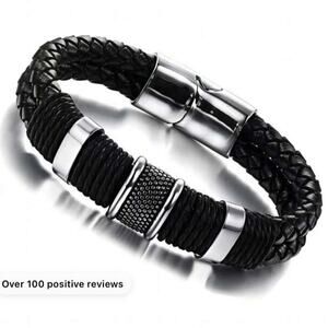 BLACK STAINLESS STEEL LEATHER BRACELET