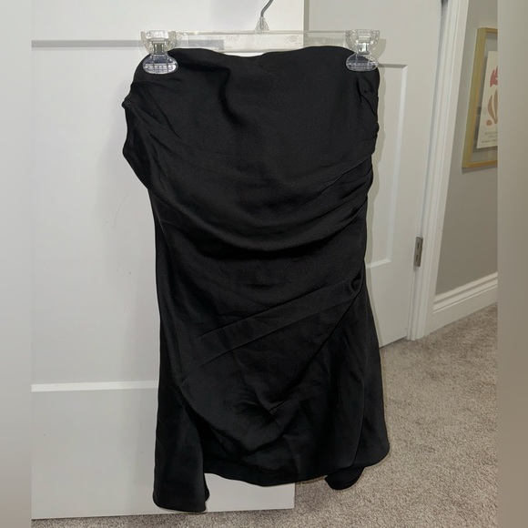 super cute strapless silk black dress longer on sides and fabric ruches