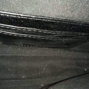 BLACK STUDDED CLUTCH SMALL PURSE WITH GOLD PLATED CHAIN HARDWARE. 9" INCHES LONG, 7" INCHES IN HEIGHTAND 5" INCHES FOR YOUR WRISTLET HAND SIZE. ZIPPER TO OPEN AND CLOSE. GOOD CONDITION!