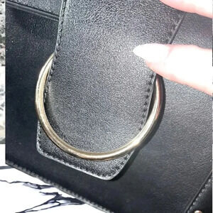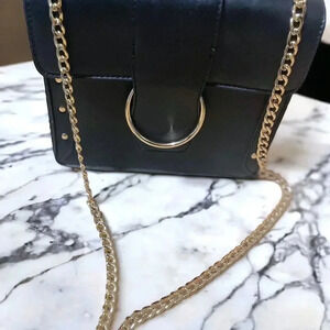 BLACK VEGAN LEATHER CROSSBODY WITH GOLD CHAIN STRAP AND GOLD HOOP BUCKLE CLOSURE