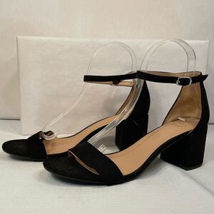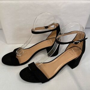 BLACK SUEDE OPEN TOE ANKLE STRAP 2.5” BLOCK HEEL by A NEW DAY SIZE 8.5