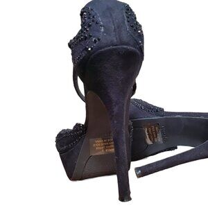 BLACK SUEDE RHINESTONE STELETTOS SIZE 6
