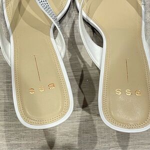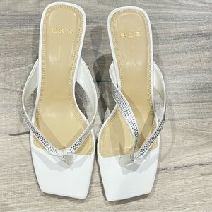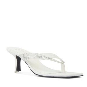 BLACK SUEDE STUDIO Estelle Square Toes Heeled Sandal in White NEW WITHOUT BOX