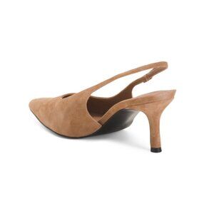 BLACK SUEDE STUDIO latte Made In Brazil Suede Pointy Toe Slingback Pumps
