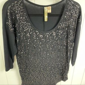Black Sequins Tee. Normal wear. See pics for details and measurements