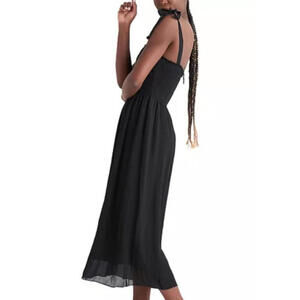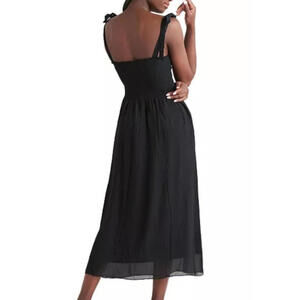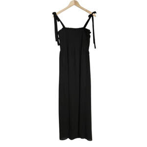 BLACK TAPE Smocked Midi Dress Black Adjustable Tie Straps Lined Size Large
