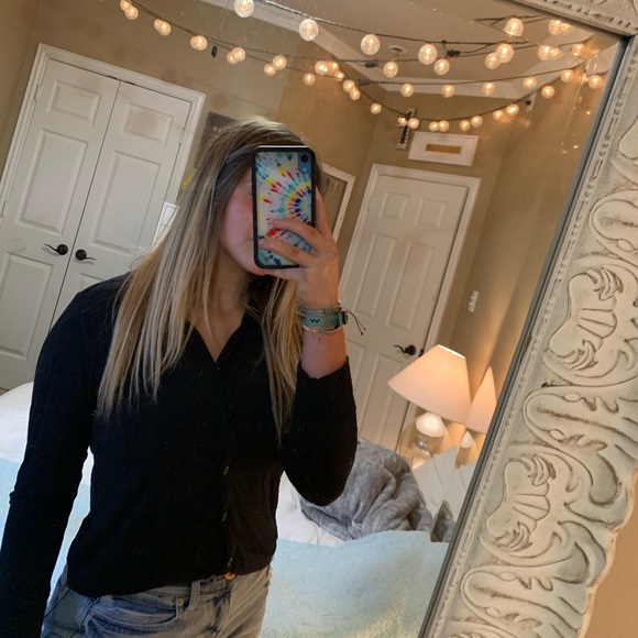 this cute black mid sleeve buttoned top is perfect for any season and can be paired with many things! it is very soft and comfortable!