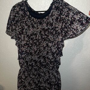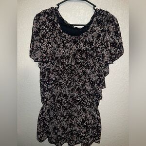 BLACK TOP WITH RED and WHITE FLORAL PATTERN- SIZE MEDIUM
