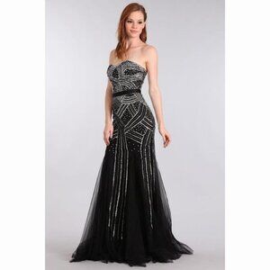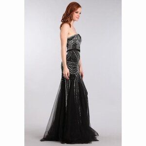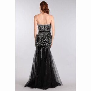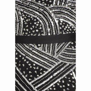 Sequin embellished sweetheart fitted dress with zipper back. Ribbon waist. Sizes may not be in stock. Please confirm before checking out.
