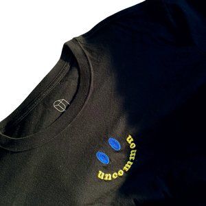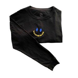 black, long sleeve, embroidered smiley face "uncommon", thrifted brand new + never worn, size us XL