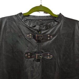BLACK VEGAN LEATHER METAL BUCKLES STUDS GOTH PUNK TUNIC TOP 3X WOMAN HALLOWEEN