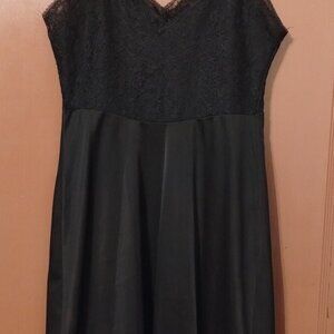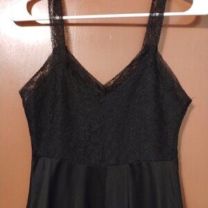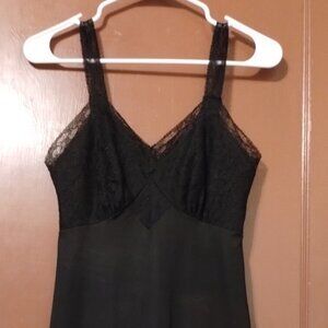 BLACK Vintage Luxite by Holeproof Nylon Slip Lace BODICE Size 34 Slip Dress-READ