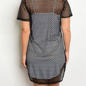 BLACK WHITE FISHNET PLUS SIZE DRESS