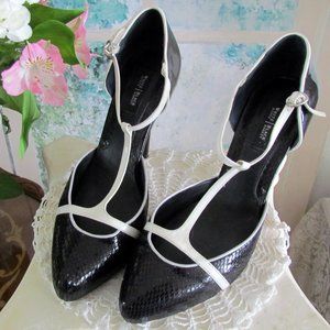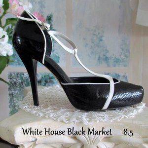 BLACK & WHITE HEELS, 8.5, 8 1/2 WHITE HOUSE BLACK MARKET SHOES, LEATHER