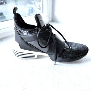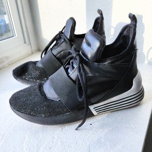 BLACK & WHITE / METALIC TIGHT MESH FRONT HIGH FASHION BOOTS/SNEAKERS SZ 9