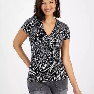 BLACK & WHITE PRINTED V-NECKK SHORT SLEEVE TOP