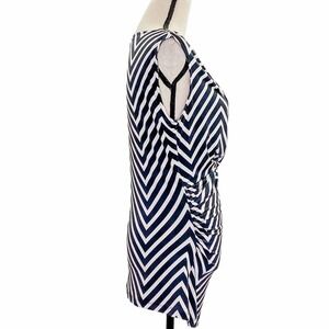 Black & White Chevron Stripe Drapey Cowl Neck Sleeveless Blouse Women's