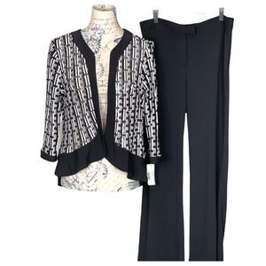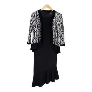 R & M Richards black and White Sequin Beaded Open Front Jacket