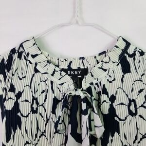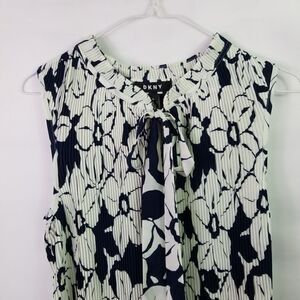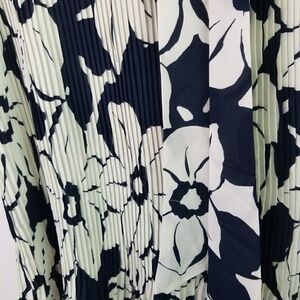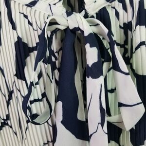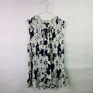 BLACK AND WHITE PLEATED FLORAL TOP W/TIE