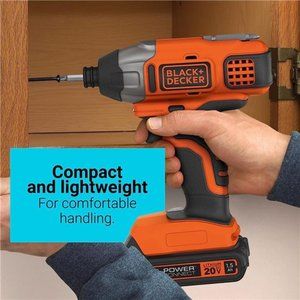 For more power and torque than a standard drill, the BLACK+DECKER 20V MAX* POWERCONNECT cordless impact driver is the tool of choice. It’s outfitted with a high-performance transmission that delivers up to 1,375 in-lb of torque and 3,000 rpm. This impact driver is perfect for a wide range of applications, such as driving lag bolts, long screws, and other fasteners through materials like knotty wood, metal, and masonry. The quick-release chuck adds a layer of convenience for fast and simple bit changes, while the soft-touch grip helps keep your hand comfortable. Plus, this impact driver is powered by a rechargeable 20V MAX* POWERCONNECT battery that can be used with other tools in the POWERCONNECT family. *Maximum initial battery voltage (measured without a workload) is 20 volts. Nominal voltage is 18 volts.