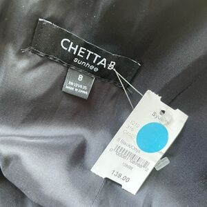 BLACK DRESS WITH RUFFLES BY CHETTA B, SIZE 8, NEW WITH TAGS, MSRP $140, MA10