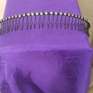 BLACK HAIR BAND WITH DECORATIVE RHINESTONES.