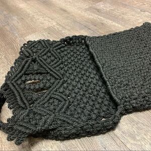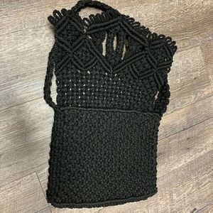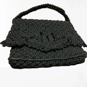 BLACK MACRAME CROCHET SHOULDER BAG PURSE