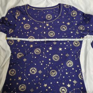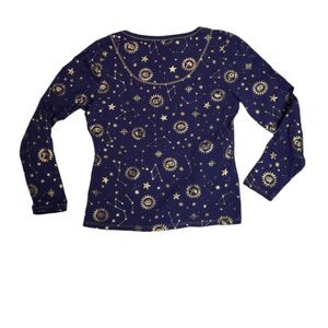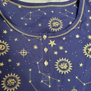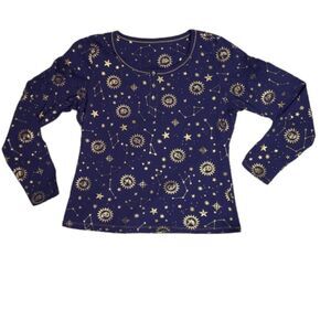 Harry Potter gold celestial navy blue magic mascots comfy henley top shirt by BLACKMILK. This shirt was a limited edition and hard to find! This top is in excellent condition, unworn. Badger for Hufflepuff, Lion for Gryffindor, Snake for Slytherin and Raven for Ravenclaw: all of the Hogwarts house mascots are featured in this stellar design. Cotton elastane.