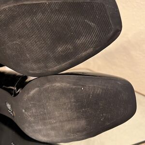 This pair of black patent leather mid heel pumps are from the UK's well known John Lewis department store, they have been worn once and have square toe and padded foot bed for extra comfort. Excellent condition, the only blemish is on the inside heel area of the outside of shoe where the two ankle parts have rubbed together whilst I was walking. No box as I bought them in UK and not enough room to bring back the box.