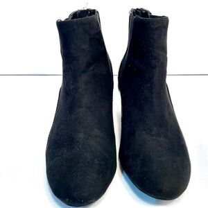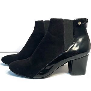 BLACK PATENT & SUEDE CALVIN KLEIN KALA 2.5” HEEL BOOTIES S-8