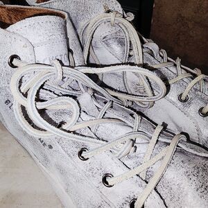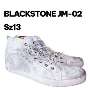 BLACKSTONE JM 02 Sz 13 Off White High Top Distressed Look Logo Sneakers Shoes