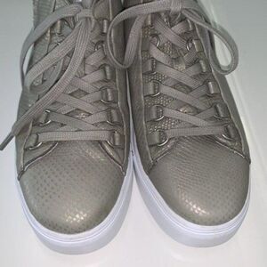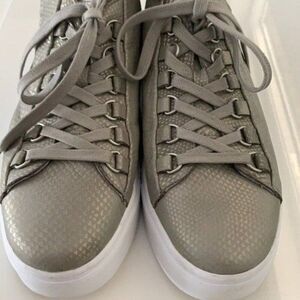 • BLACKSTONE Handcrafted Premium Leather Grey Metallic Snake Embossed Lace-Up Side Zip Sneakers