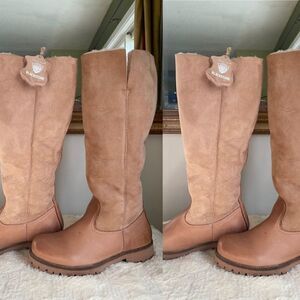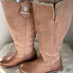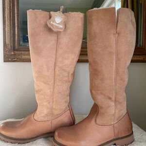 Plush genuine shearling lends luxury and comfort to a sturdy high-calf boot grounded by a sturdy lugged sole.
