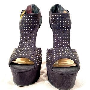 BLACK SUEDE ANKLE STRAP OPEN TOE 6” HEELS SIZE 8.5