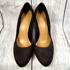BLACK SUEDE FIONI PUMP SIZE 6.5 w 4” STACKED HEEL