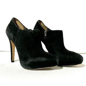 BLACK SUEDE SAM EDELMAN 4.5” SIDE ZIP ANKLE BOOTS SIZE 6