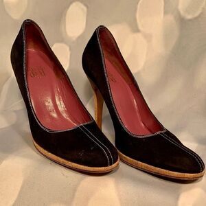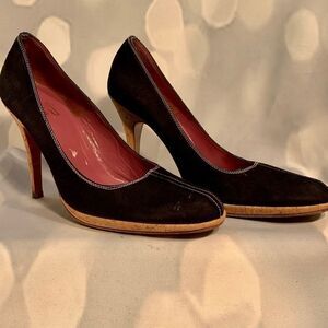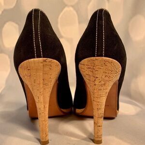 BLACK SUEDE w 4.5” CORK HEEL SIZE 9B by CHARLES DA