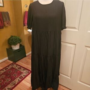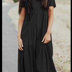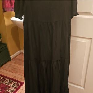Short flutter sleeved chic black boho maxi dress. 100% cotton.