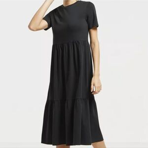 The hem shape is A-line and features a round neck with several tiers. Imported. Machine washable. NWT.
