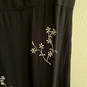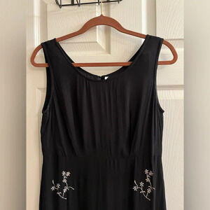 This is a cute Midi… black sleeveless… with floral vines scattered throughout…