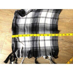 This sophisticated black/white plaid rectangle scarf is a timeless addition to any woman's wardrobe. Made from polyester, it measures 33X13 inches. The unknown brand offers unparalleled quality and style.