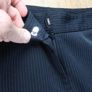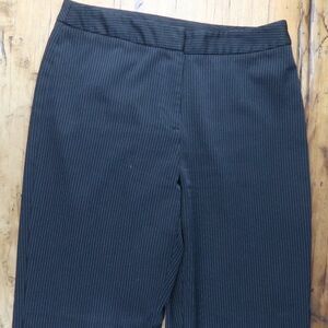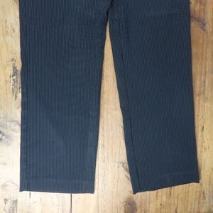 BLACK WITH LIGHT GREY PIN STRIPE WIDE LEG HIGH RISE WAIST WORK OFFICE BUSINESS TROUSERS SIZE LARGE PRE OWNED NO FLAWS