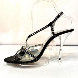 BLACK WITH RHINESTONES & SILVER HEEL 4” SIZE 7