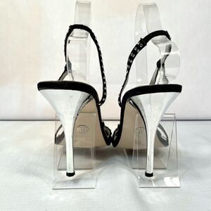 BLACK WITH RHINESTONES & SILVER HEEL 4” SIZE 7 by MICHAEL ANTONIO